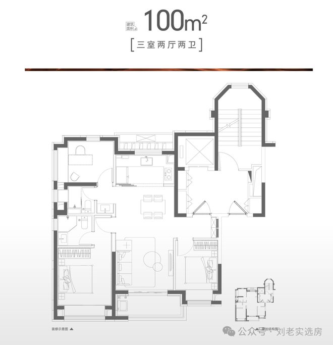 建面约100㎡户型设计得恰到好处!整个户型格局方正,也是当下颇受欢迎的飞机户型。